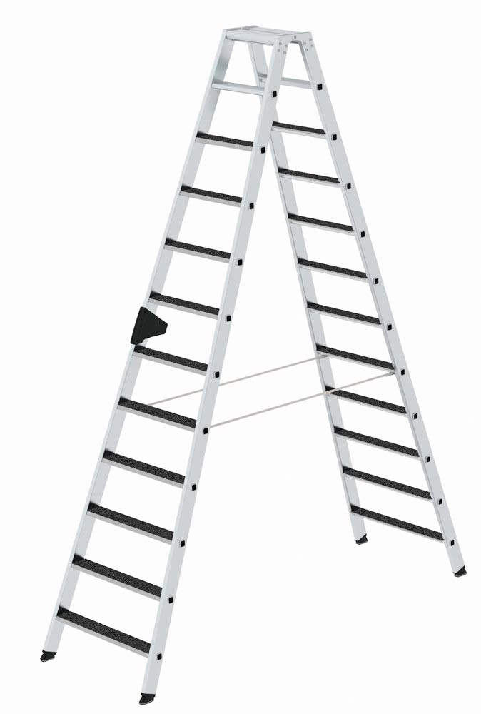 Stufenstehleiter, Aluminium, beidseitig begehbar, 2 x 12 Stufen, Höhe 2,79 m, Arbeitshöhe 4,20 m, mit rutschhemmender Trittauflage (R13)