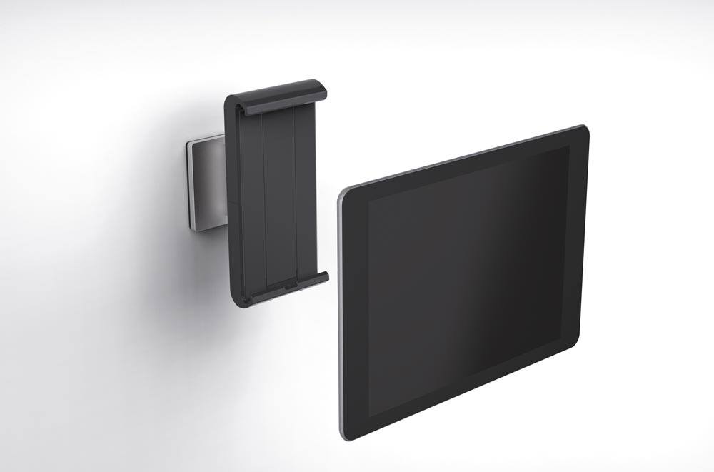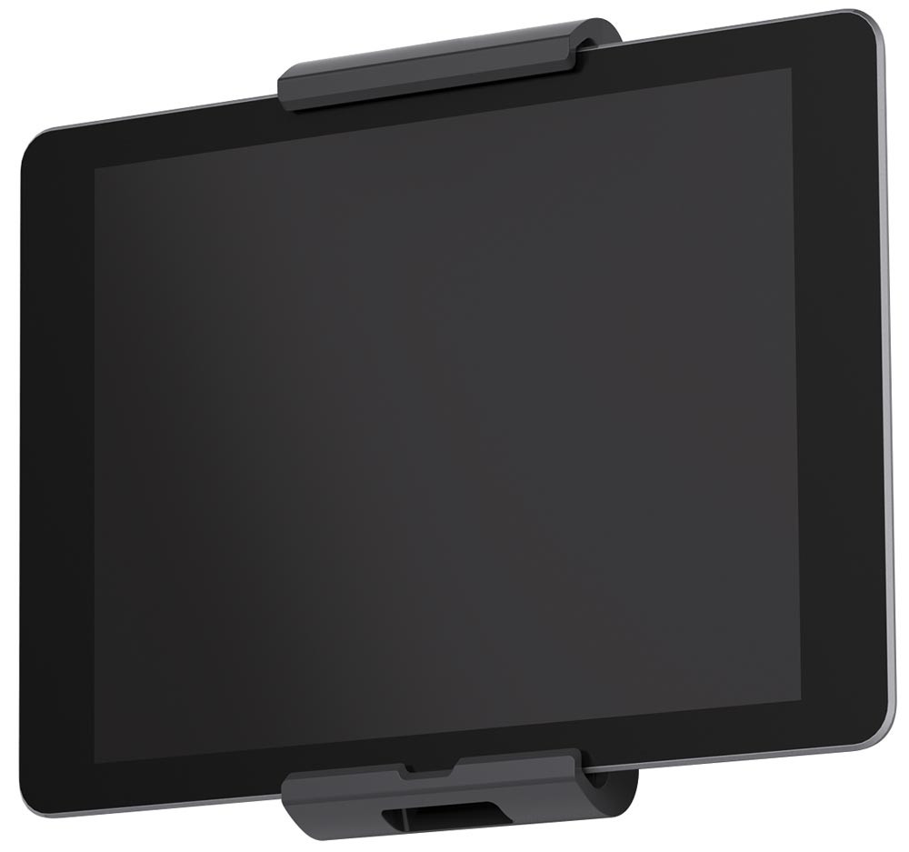 · Variables Aufnahmemodul für alle Tablet-Größen von 7" bis 13" · Symmetrische Öffnung von 160-275 mm · Einfaches Einsetzen und Entnehmen des Tablets · Gummierte Oberflächen zum Schutz der Tablets vor Beschädigungen · 360° drehbar für Hoch- und Querformat mit Rasterpunkten bei jeweils 90° · Langloch im Haltearm ermöglicht die Stromzuführung mittels Ladekabel · Diebstahlsicherung durch Verriegelung des Halters mit Spezialschlüssel · Wirkungsvoller Schutz vor seitlichem Herausziehen des Tablets · Farbe: metallic-silber