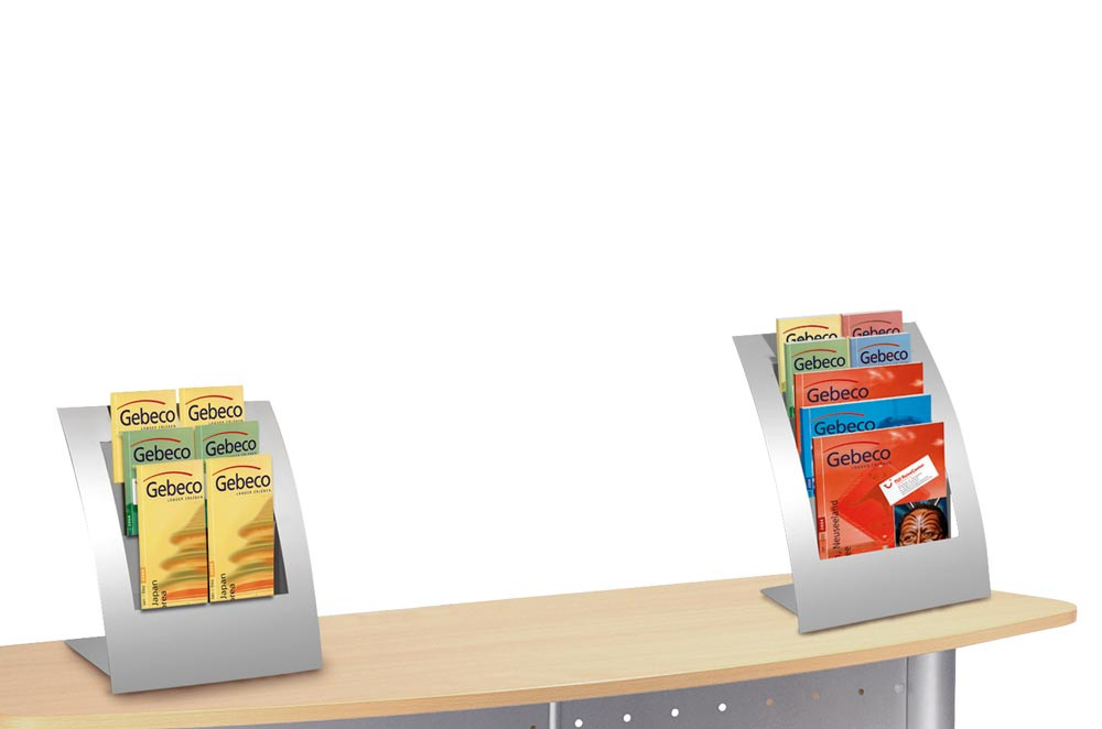 ∙ Tisch-Prospekthalter aus Metall in alu-silber, sehr standsicher