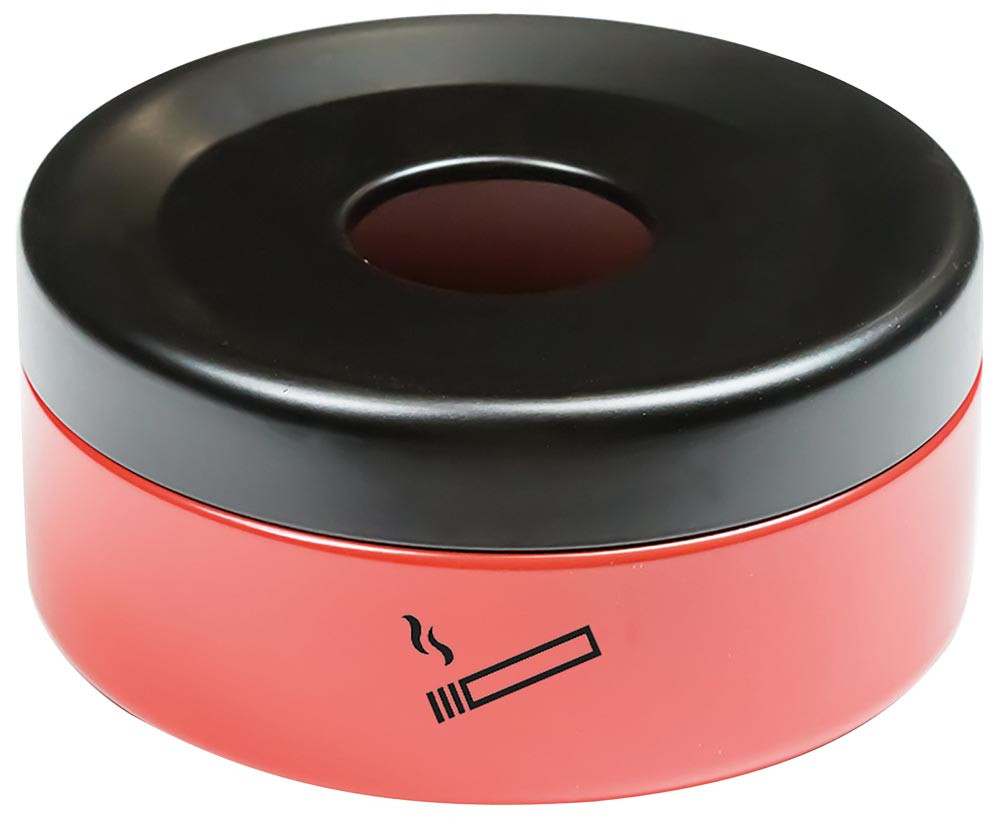 Tischascher, Durchm.xH mm 150x70 mm, Vol. 1 Liter, Behälter rot, Deckel RAL 9005 schwarz