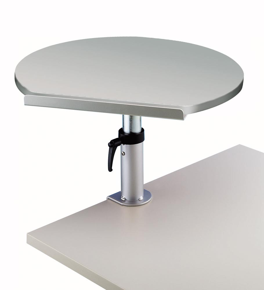 · Hochwertige Arbeitsplatte, besonders formstabil und leicht zu reinigen · Platte um 10° nach vorne neigbar und um 360° drehbar · Anschlagkante und Ablage für Stifte und Utensilien · Teleskopsäule aus Stahl, Ø 60 mm · Stufenlos höhenverstellbar · Fixierung ohne Kraftaufwand durch ergonomischen Klemmhebel · Klemmfuß, 100 mm breit, für Tischplatten bis 80 mm Stärke · Schreibtischschonende Unterlage · Höhe ab Schreibtischplatte 310-430 mm · Traglast 30 kg