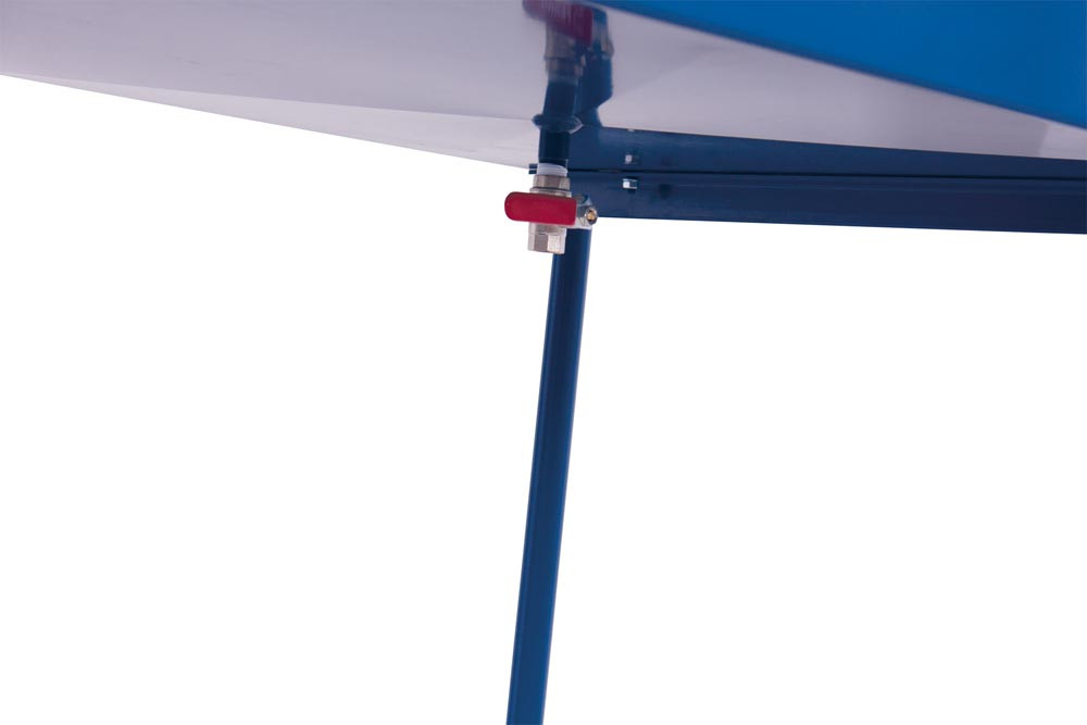 · Hochstehender Schiebebügel · Obere Wanne 100 mm hoch mit herausnehmbarem Gitterrost, verzinkt (Maschenweite 30 x 30 mm) und konischem Ablasshahn 1/4" · Untere Wanne 25 mm hoch