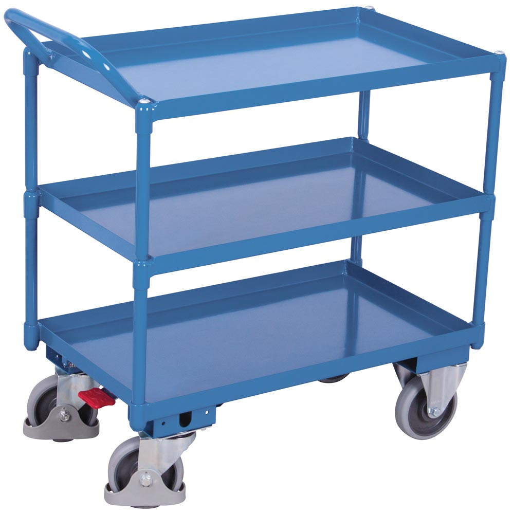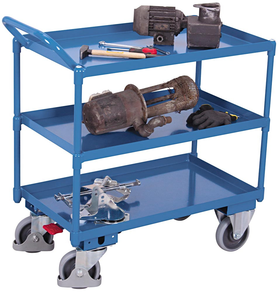 Tischwagen, 3 öldicht verschweißte Wannen, Ladefläche LxB 845x495 mm, Außenmaße LxBxH 985x500x910 mm, Traglast 400 kg, RAL 5010 enzianblau EP527673