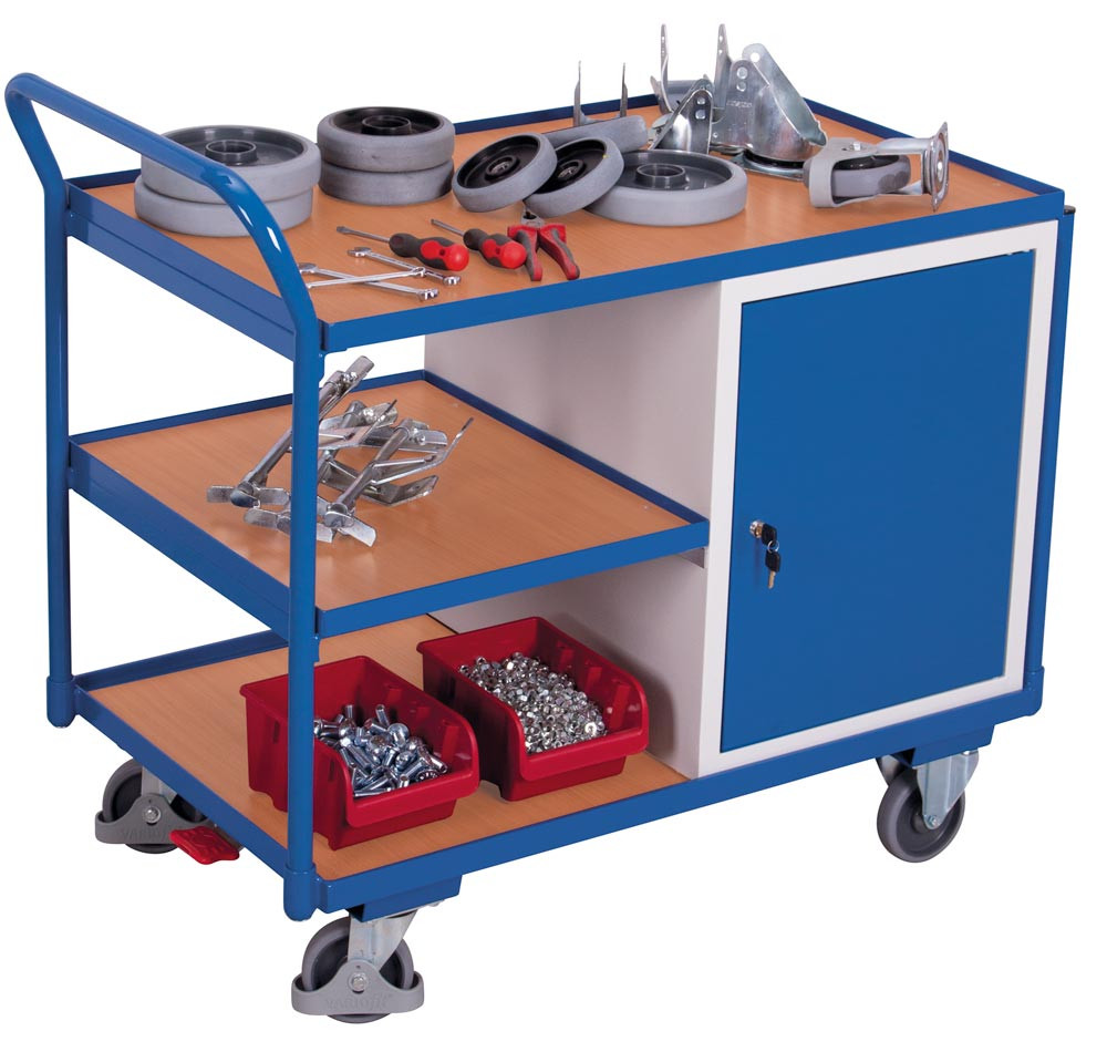 Tischwagen mit 3 Ladeflächen, 1 Tür, BxTxH 1125x624x1100 mm, 2 Bremsrollen EP527668