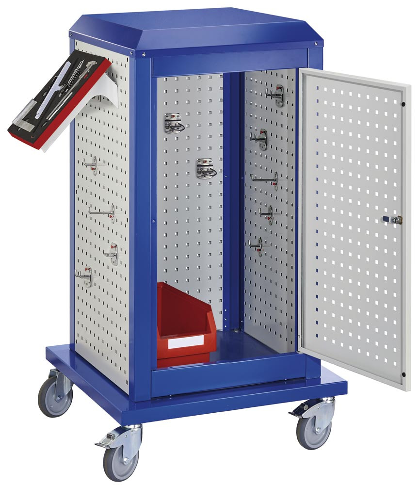 Tool-Tower klein, BxTxH 700x700x1260 mm, mobil, 3 Lochplatten, 1 Boden, 1 Tür, RAL 5010/7035 EP535999