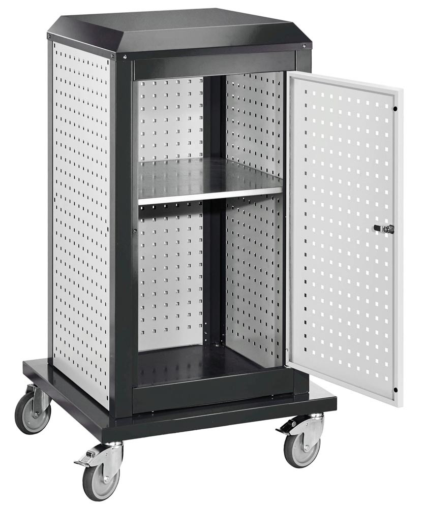 Tool-Tower klein, BxTxH 700x700x1260 mm, mobil, 3 Lochplatten, 1 Tür, RAL 7016/7035 EP557606