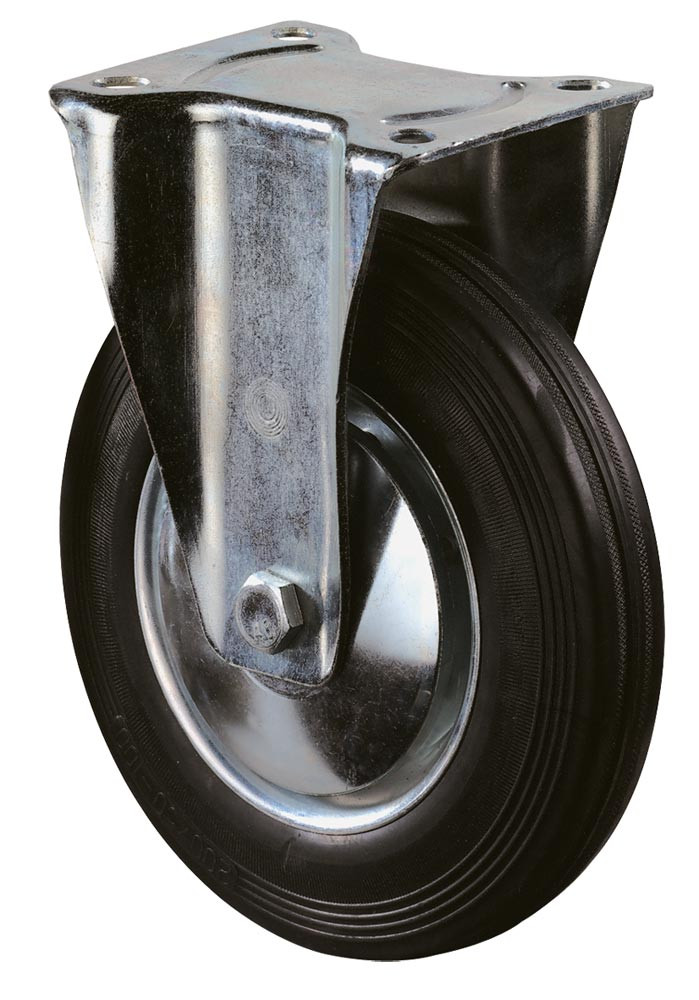 Transportgeräte-Lenkrolle, Gummi schwarz, Durchm. 200 mm, Traglast 205 kg, Rollenlager, Anschraubplatte EP529306