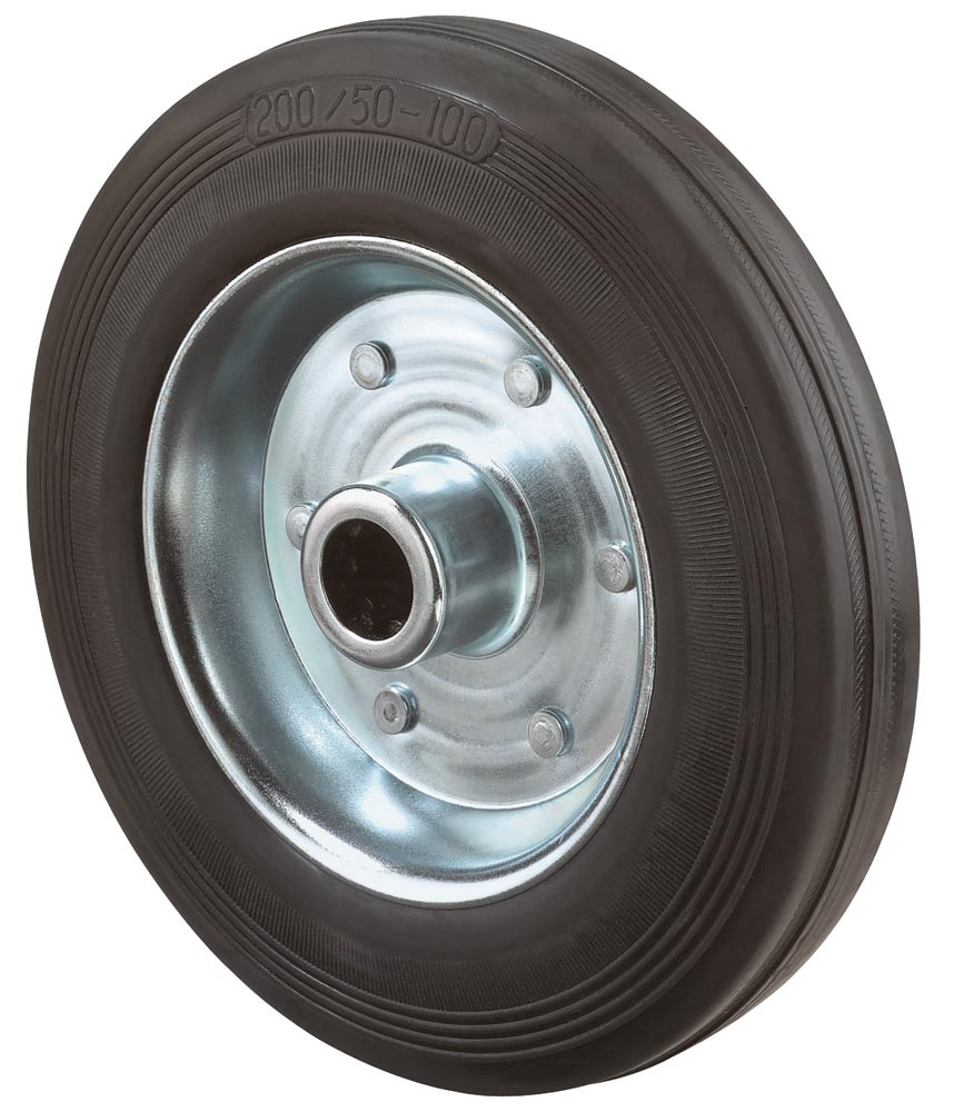 Transportgeräte-Rad, Gummi schwarz, Durchm. 100 mm, Traglast 70 kg, Rollenlager