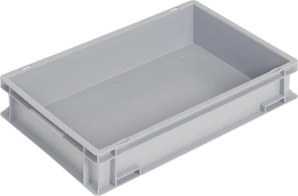 Transportstapelbehälter L600xB400xH120mm grau PP Muschelgriff Seitenwände geschlossen