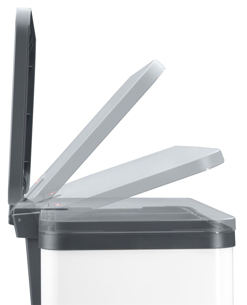 Tret-Abfallsammler, Volumen 3x9 l, BxTxH 470x340x430 mm, Gehäuse Stahlblech weiß, Kunststoff-Deckel schwarz mit Soft-Close EP551943