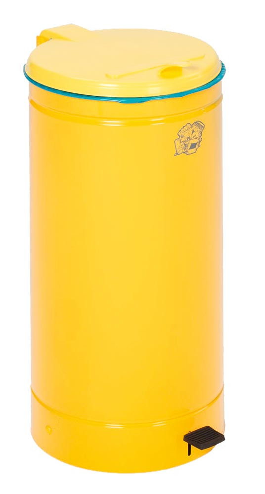Tretabfallsammler, fußbetätigt, Stahlblech, Volumen 60 Liter, Durchm. 450 mm, Höhe 700 mm, Behälter gelb, Deckel gelb