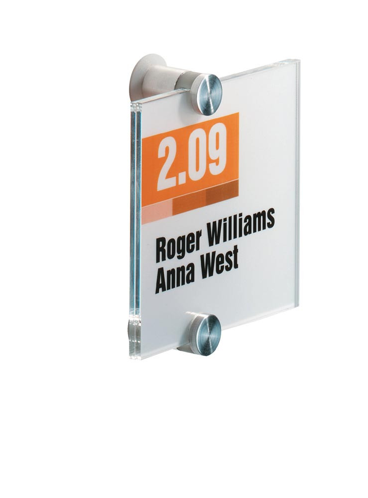 elegantes, zeitloses Türschild · aus hochwertigem Acrylglas und einer semi-transluzenten Folie · Folie wird zwischen die beiden polierten, stabilen Acrylplatten gelegt und durch Schrauben an der Wand fixiert · einfache Montage durch Aufbauanleitung · Folienschilder lassen sich durch eine Perforation leicht aus dem A4-Format trennen und sind Farb- sowie s/w Laserdrucker geeignet