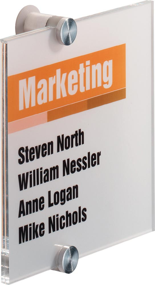 elegantes, zeitloses Türschild · aus hochwertigem Acrylglas und einer semi-transluzenten Folie · Folie wird zwischen die beiden polierten, stabilen Acrylplatten gelegt und durch Schrauben an der Wand fixiert · einfache Montage durch Aufbauanleitung · Folienschilder lassen sich durch eine Perforation leicht aus dem A4-Format trennen und sind Farb- sowie s/w Laserdrucker geeignet