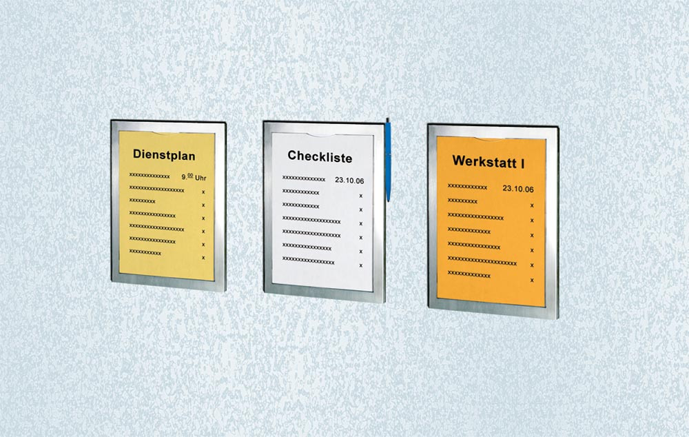 ∙ Mit Auskerbung, oben an der Scheibe, für griffgünstige Entnahme der Informationsblätter