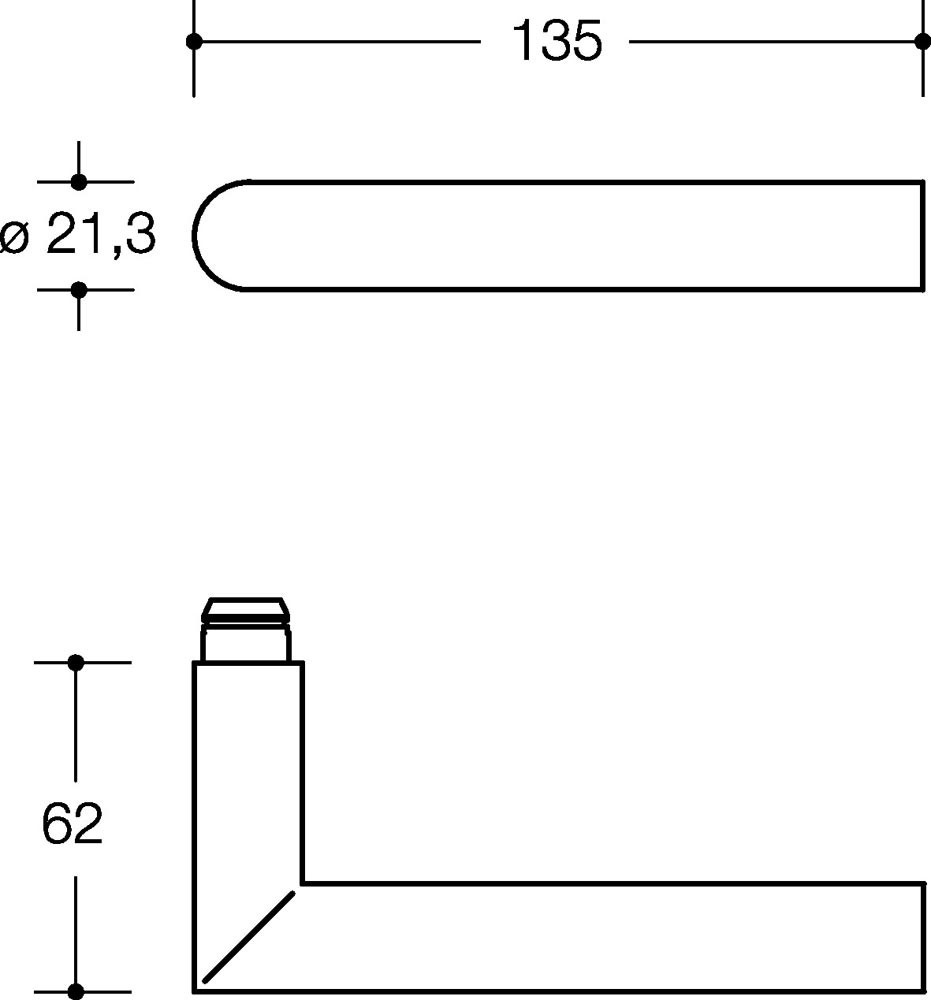 in R-Technik · Türdrücker aus mattem Polyamid mit durchgehendem Stahlkern · Durchmesser 21,3 mm · mit Vierkant 8, 8,5, 9 oder 10/8 mm abgesetzt · kompatibel mit folgenden Rosetten und Schildern: 305.21PBR, 230.21PBR, 315.21PBR