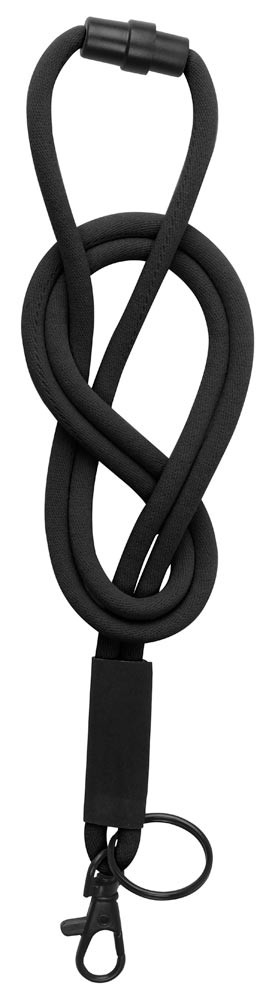 Umhängeband rund, Polyester, 460 mm lang, mit Karabinerhaken + Schlüsselring, schwarz, VE 30 Stück