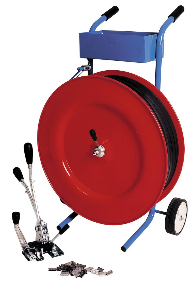 Umreifungs-Komplett-Set, PP 13 mm, Spann-Verschlussgerät, 3000 Meter Band, 2000 Hülsen, 1 Abrollwagen EP510323