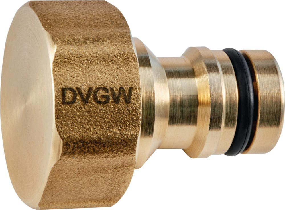 Messing · für Trinkwasser · geprüft und zertifiziert: DVGW VP550, DVGW W270, KTW Leitlinie · DVGW-Baumusterprüfzertifikat, Registriernummer DW-0310BT0218 · Schläuche und deren Anschlüsse müssen nach jedem Gebrauch ordnungsgemäß gereinigt und getrocknet werden · Verschlussstecker zum Schutz vor Kontamination