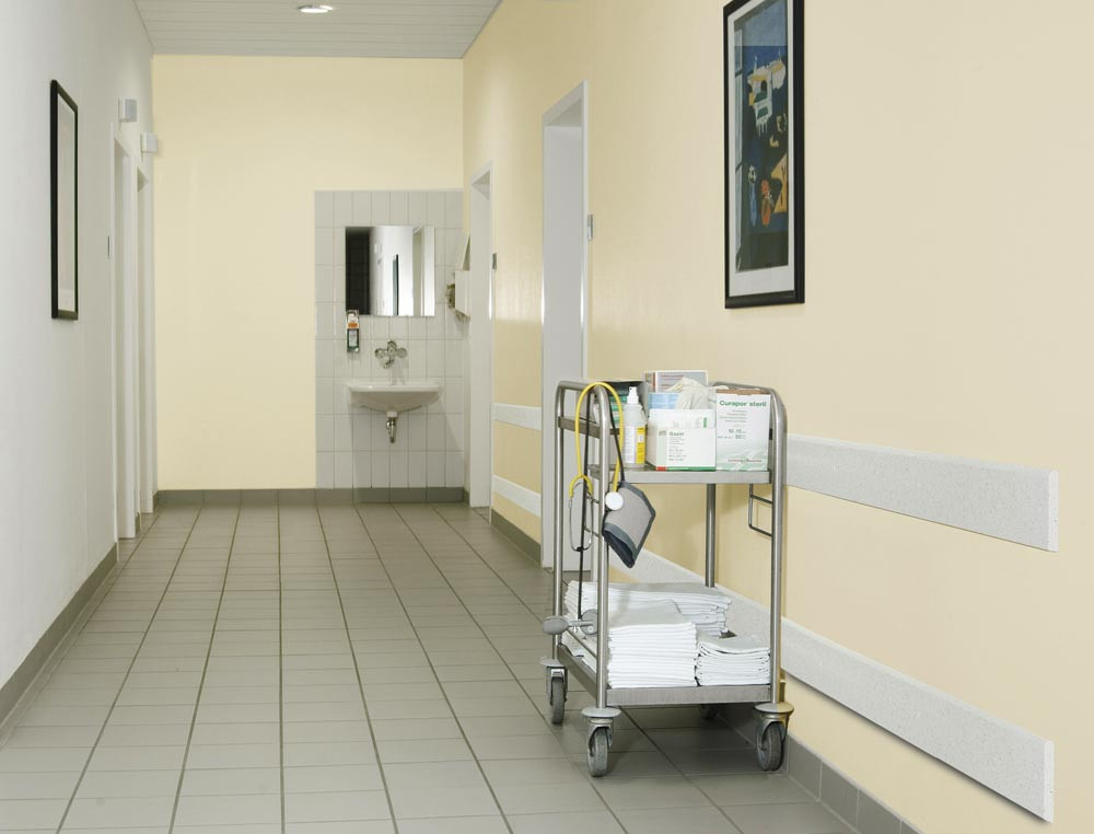 · Vielfältig einsetzbares Profilelement zum Schutz von Wänden · Aus durchgefärbtem Polyethylen · Äußerst stoß- und schlagfest · Geeignet für Räume und Gänge in öffentlichen Gebäuden, Krankenhäusern, Pflegeheimen, Wartezimmer etc. · Formbeständig bis -30 °C · Pflegeleicht, physiologisch unbedenklich und resistent gegen übliche Reinigungsmittel · Material lässt sich mit Werkzeug für die Holzbearbeitung vor Ort zuschneiden und bearbeiten · Brandschutzklasse B2 · Vorgebohrte Löcher für Senkkopfschrauben (Schrauben nicht im Lieferumfang) · Farbe granit-hell
