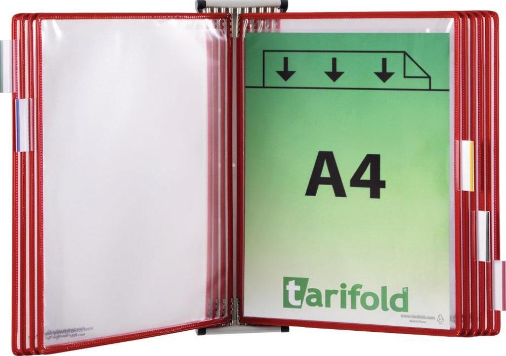 Wandhalter 5 Sichttafeln rot mit Drahtrahmen, kunststoffummantelt passend für DIN A4