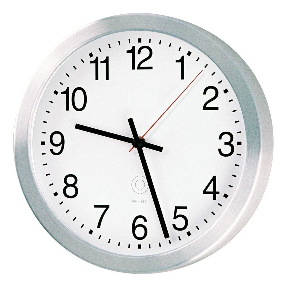 Wanduhr Funkuhr Aluminium mattsilber Ø 400 mm 1,5 V Zahlen Ø 400 mm