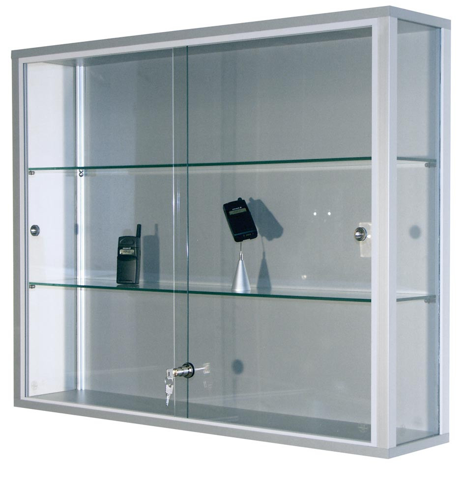 Wandvitrine, BxTxH 1500x200x800 mm, Aluprofile, 2 Glasböden, Schiebetüren