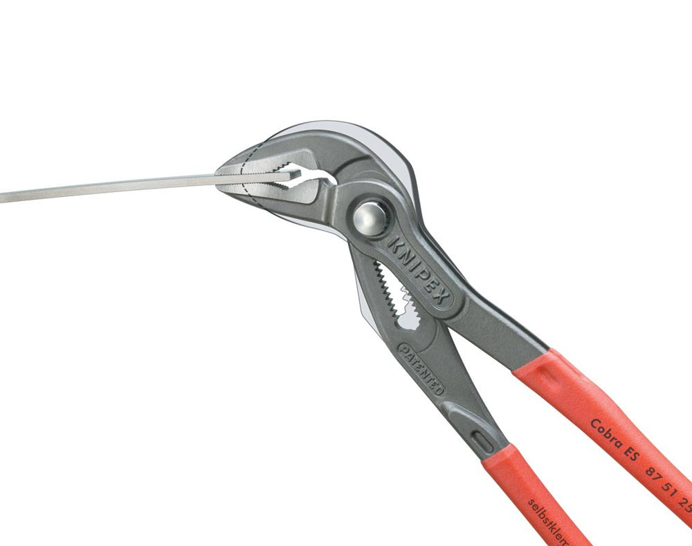 selbstklemmend an Rohren und Muttern · durchgestecktes Gelenk · Einstellung per Knopfdruck direkt am Werkstück · besonders guter Zugang zum Werkstück durch sehr schlanke Bauform im gesamten Kopf- und Gelenkbereich · ideal für Service und Instandhaltung, Gerätereparatur, Fahrzeugbau und Industrie · Klemmschutz · Chrom-Vanadin-Elektrostahl, geschmiedet, mehrstufig ölgehärtet