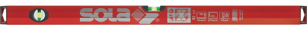 aus Aluminium · für höchste Anforderungen · ergonomisch geformtes Alu-Profil mit thermoresistenten Präzisions-Libellen · Horizontallibelle mit Vergrößerungslinse · mit patentierter FOCUS-Libelle · gute Ablesbarkeit auch an dunklen Stellen durch Fluoreszenz der Libellen · Licht- und Ladungsresistente Libellen · ab 100 cm Länge mit zweiter Vertikallibelle · schockabsorbierende Endkappen bei senkrechtem Fall · Genauigkeit Normallage: 0,50 mm/m, bei Umschlagmessung: 0,75 mm/m