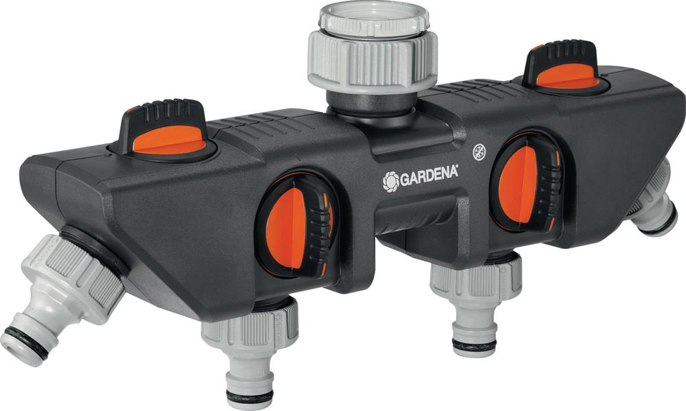 geeignet für Wasserhähne mit 26,5 mm (G 3/4 ″)- und 33,3 mm ( G1 ″)-Gewinde · anschließen von Bewässerungscomputern oder Bewässerungsuhren ist möglich · Wasserdurchfluss läßt sich individuell regulieren/abstellen durch Regler pro Anschluss · Kunststoff