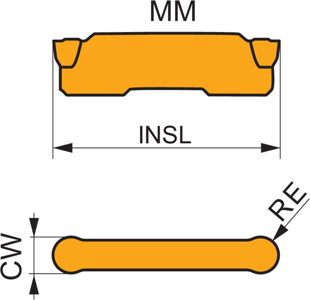 Doppelseitige Wendeschneidplatte zum Ein- und Abstechen · 25 mm lang · mit einer Schnittbreite von 3 mm und einem Vollradius von 1,5 mm und einer Schnittbreitentoleranz von ±0,05. Sorte T7325 MT-CVD-beschichtetes · funktional abgestuftes WC-Co-Hartmetall innerhalb der ISO-Sortenbereiche M10–M25 und K15–K25 für die Bearbeitung von Edelstahl und Gusseisen. MM Geometrie · Vollradius zum Kopieren und Längsdrehen · bei kontinuierlichen bis unterbrochenen Schnitten.