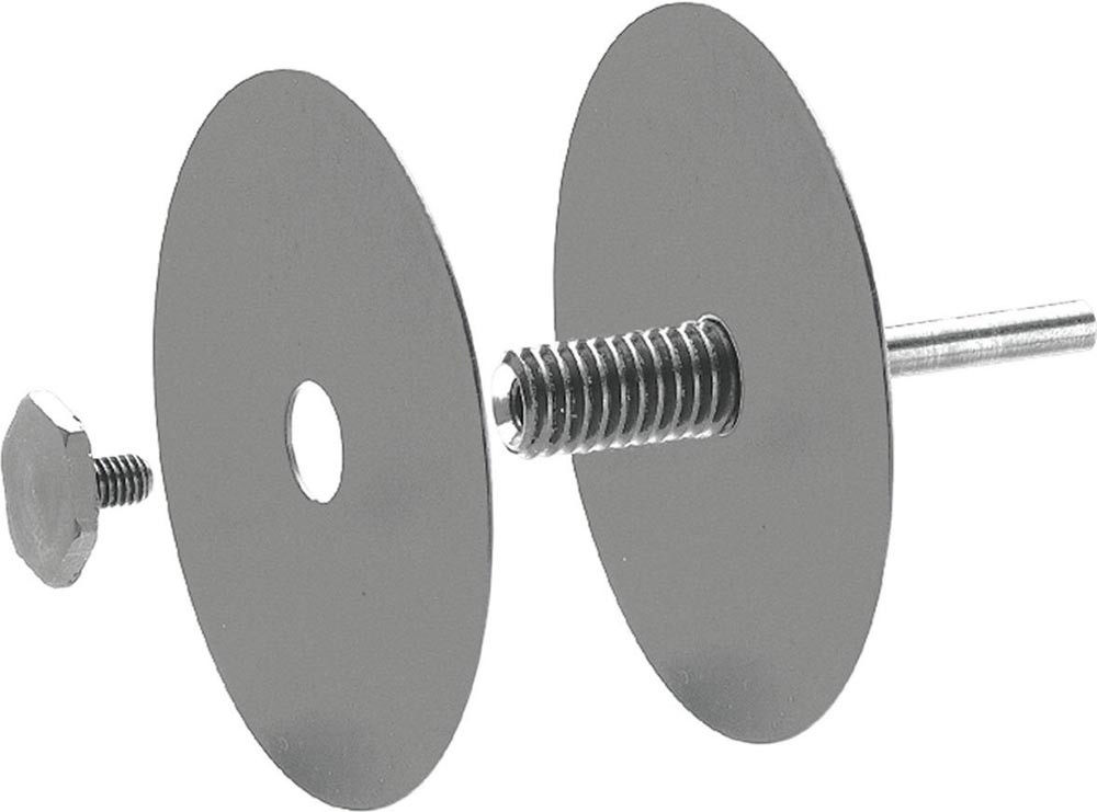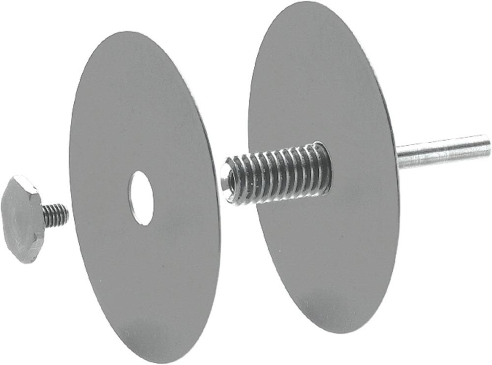 mit der schaftseitigen Sechskantmutter des Werkzeughalters wird die Spannbreite voreingestellt · es können bis zu drei POLINOX-Ronden gespannt werden · um die seitliche Flexibilität zu variieren, wird jeweils ein Paar Seitenscheiben Ø 50 und 80 mm geliefert · der Werkzeugwechsel erfolgt stirnseitig durch Lösen der Befestigungsschraube · der Werkzeughalter muss zum Werkzeugwechsel nicht aus der Antriebsmaschine ausgespannt werden