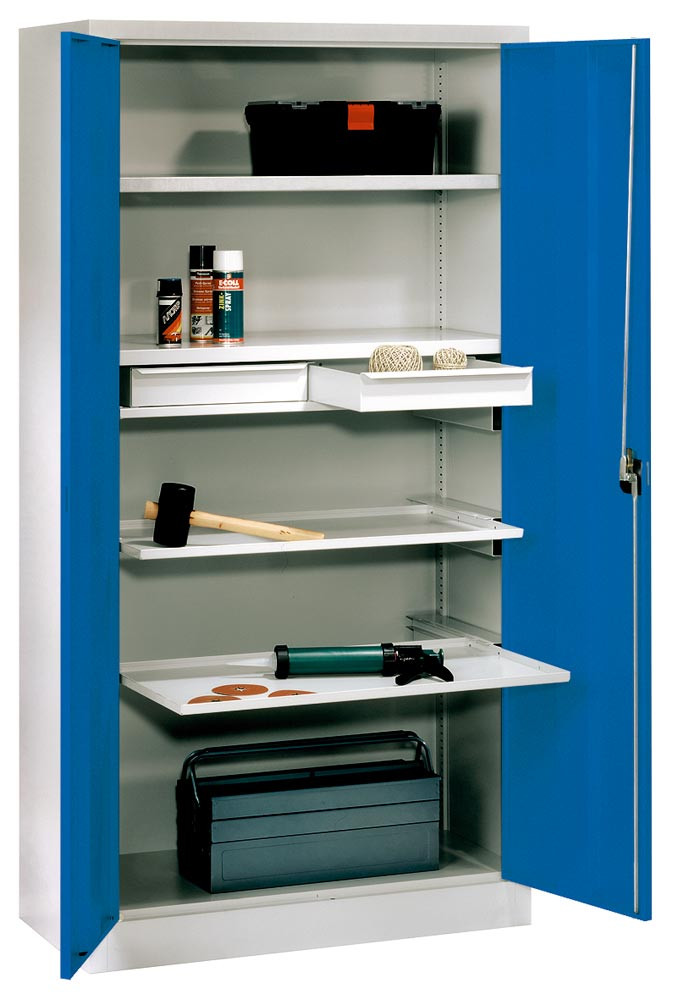 Werkzeugschrank, Vollblechtüren, 4 beschichtete Böden, BxTxH 1000x500x1950 mm, RAL 5010 EP525307