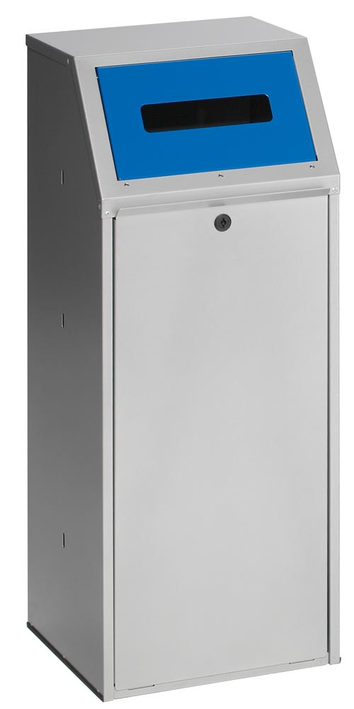 Wertstoffsammler Vol. 69 l, BxTxH 400x400x1000 mm, Einwurf rechteckig (für Papier) RAL 5010 enzianblau, Korpus silber, inkl. Inneneinsatz EP530653