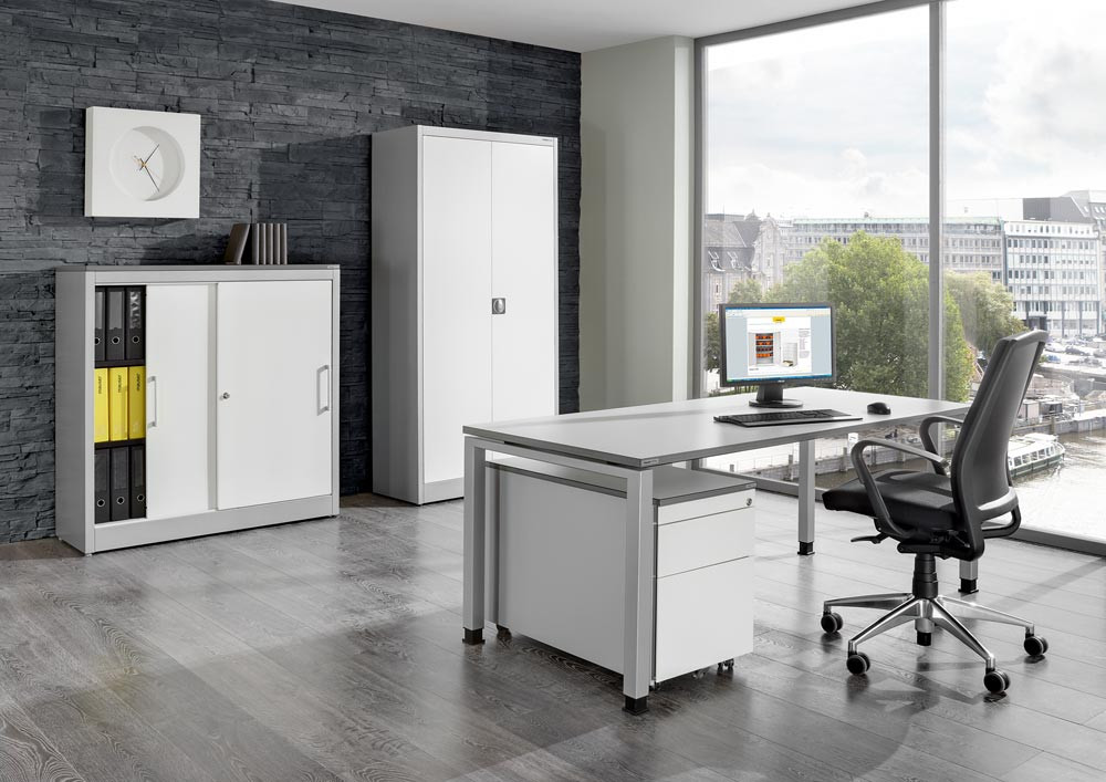 Winkelansatztisch, links, BxTxH 800x600x680-760 mm, Platte weiß, Umleimer Multiplex, Gestell reinweiß EP537581