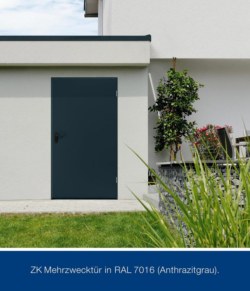ZK Mehrzwecktür Breite 1000 mm Höhe 2125 mm DIN rechts RAL7016 Stahlblech