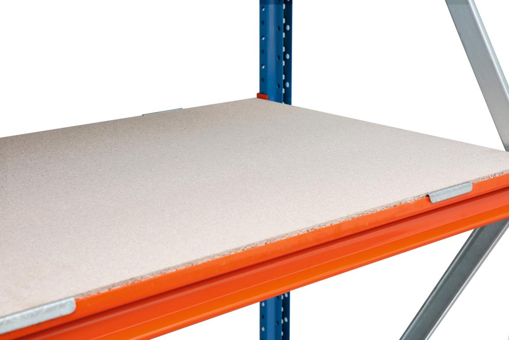 Zusatzebene für Weitspannregal, bestehend aus Auflageträger-Paar und Spannplatte, BxT 2700x800 mm, Fachlast 700 kg