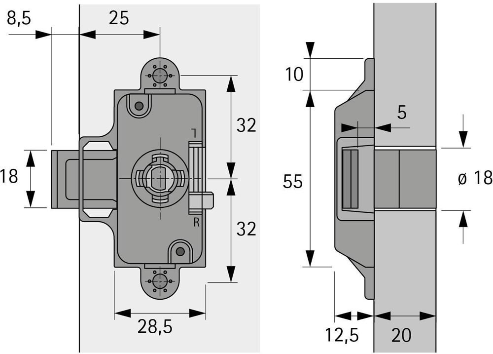 Zylinderkastenschloss Prestige 2000 Z23, Ø18mm, 25 mm, 20 mm